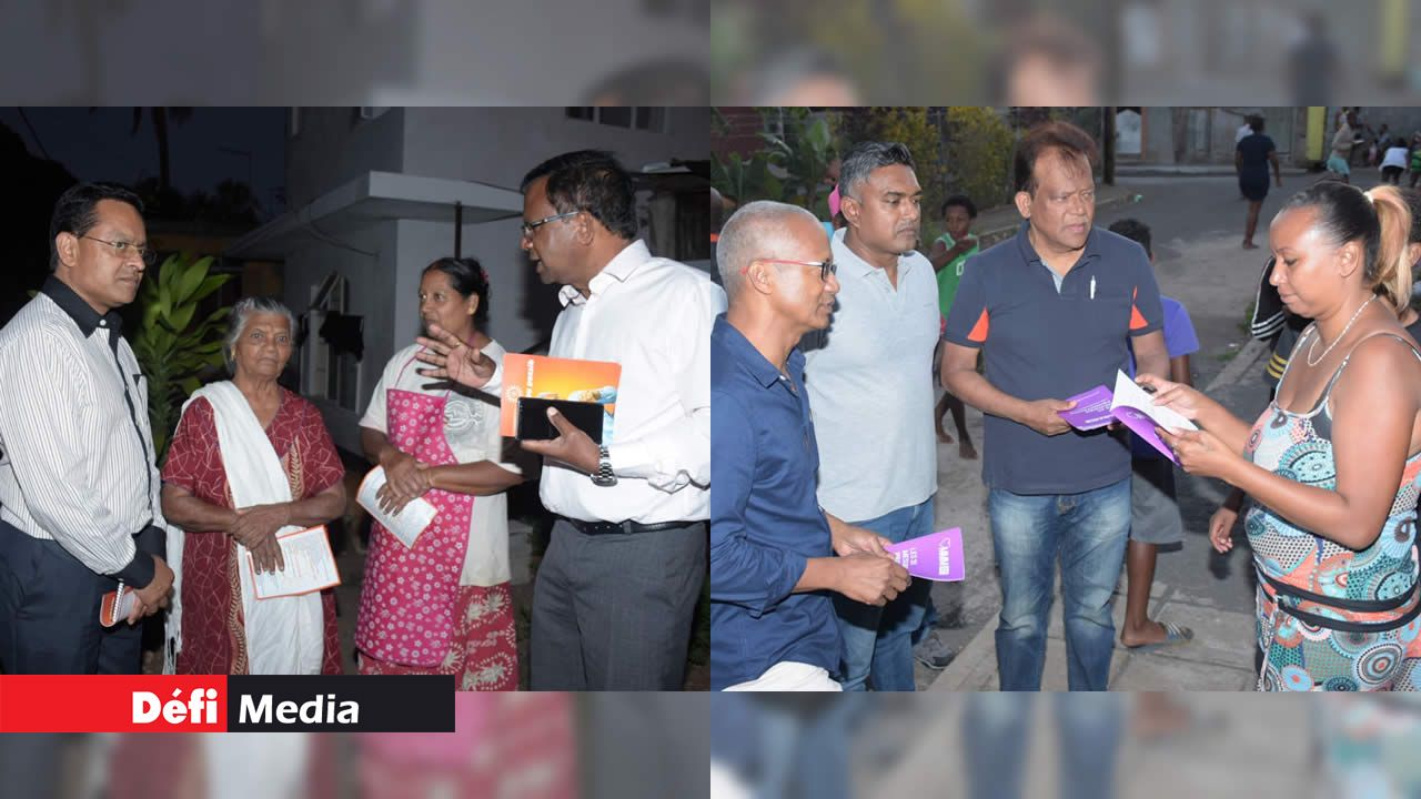 Les candidats de la circonscription No 5, sous la bannière de l’Alliance Morisien et du Mouvement Militant Mauricien, étaient à pied d’œuvre dans l’après-midi du vendredi 18 octobre à Terre-Rouge, soit dans la région de la NHDC Camp Laboue et à la Résidence Nelson Mandela. Une distribution de pamphlets, contenant le programme électoral de chacun des deux parties, a eu lieu lors des visites aux domiciles des habitants.